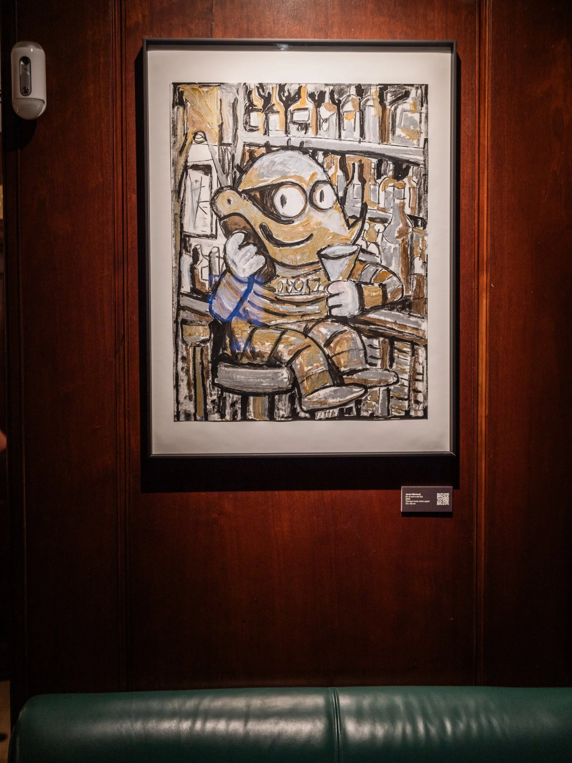 More than just a conventional exhibition, the project fosters a dialogue between art and everyday life: the artworks coexist with the bar, the bottles, and the nooks and crannies of the space, becoming part of the bar experience. Some pieces are even incorporated into the cocktail service, such as a ceramic pitcher-shaker designed by Mariscal or the jackets worn by the bartenders themselves.